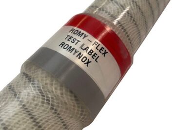 The label is applied in a clean environment and can be applied to all our hoses. A maximum of 50 characters can be placed on the Romy-Label.